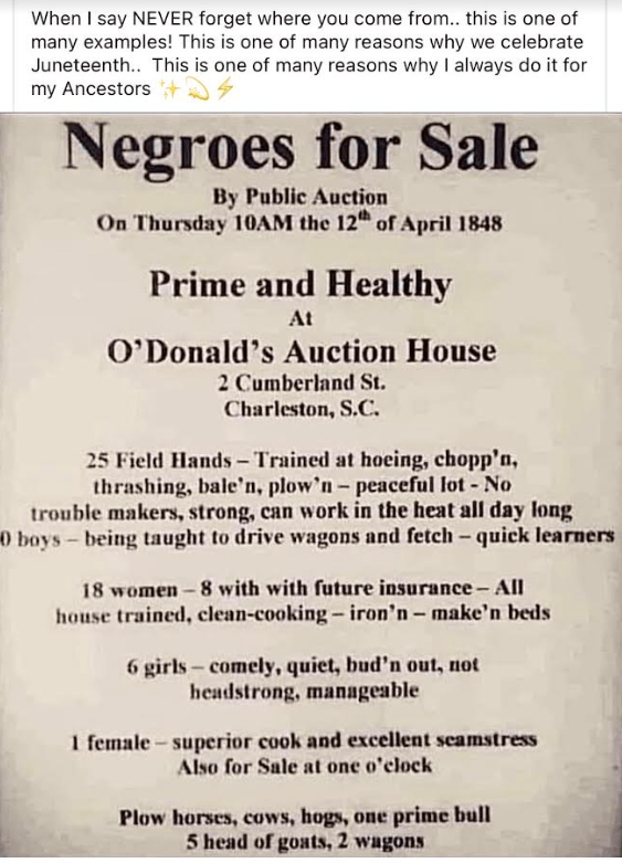 Anúncio de venda de escravos nos Estados Unidos em 1848
